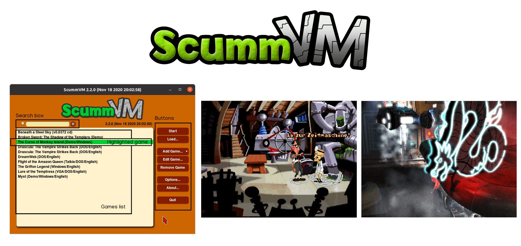 Der Name „ScummVM“ steht für: Script creation utility for maniac mansion – Virtual Machine. Das 2001 herausgebrachte Programm diente also vorrangig als Dienstprogramm zur Skripterstellung für „Maniac Mansion“, ein Point-and-Click-Adventure von LucasArts bzw. Lucasfilm Games, das 1987 auf den Markt kam und in Deutschland von Softgold vertrieben wurde. Nach Maniac Mansion wurden noch weitere Spiele mit der ScummVM spielbar, vor allem jene von LucasArts, die ebenfalls auf der Skriptsprache SCUMM basierten – Day of the Tentacle, Monkey Island, Sam and Max, und so weiter.