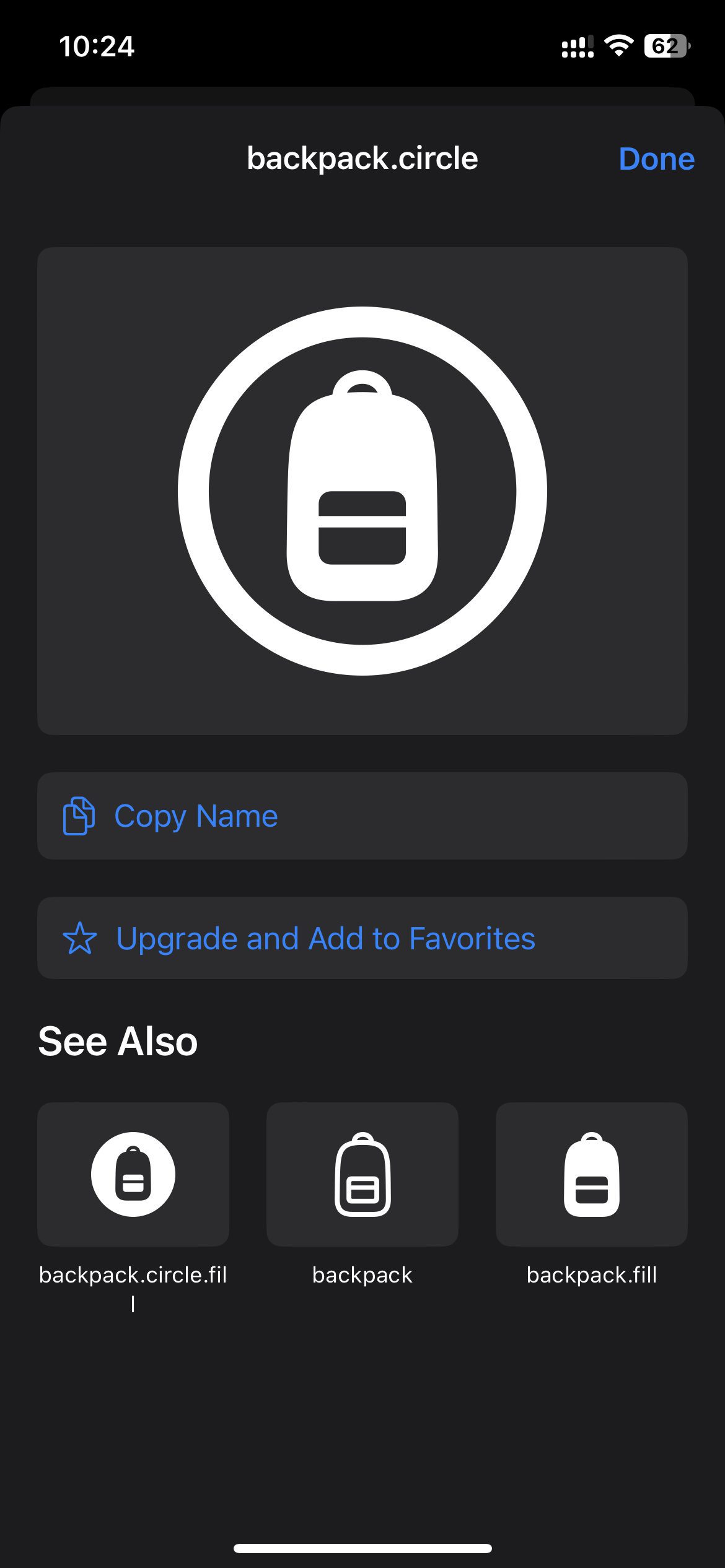 Die Symbols Explorer App bietet keinen allzu großen Funktionsumfang, ist aber äußerst praktisch, wenn ihr unterwegs bestimmte Symbole heraussuchen wollt. Durch eine eingebaute Funktion lassen sich deren Namen kopieren und z. B. in den Notizen einfügen. So könnt ihr sie später in einer anderen App, etwa am Apple Mac, schneller suchen und finden. Eine Zusatzfunktion, die ich sehr praktisch finde, ist die Anzeige von verwandten Symbolen. Sucht ihr etwa nach „Speaker“ und tippt eines der Lautsprecher-Bilder an, dann wird unter dessen vergrößerter Ansicht eine Auswahl an ähnlichen Bildern angezeigt. So wählt man nicht immer das Erstbeste aus, sondern kann ein bisschen variieren und sich inspirieren lassen.