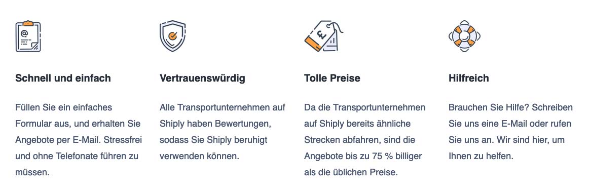 Im Gegensatz zu einer direkten Beauftragung einer Spedition ist Shiply im Vorteil, da man hier von mehreren Anbietern Angebote unterbreitet bekommt und dann einen Preisvergleich durchführen kann. Dadurch erhält man einen günstigen Transport seiner Dinge und dazu noch eine Bewertung des Dienstleisters, sodass man mit hoher Wahrscheinlichkeit keinen Betrüger bucht.