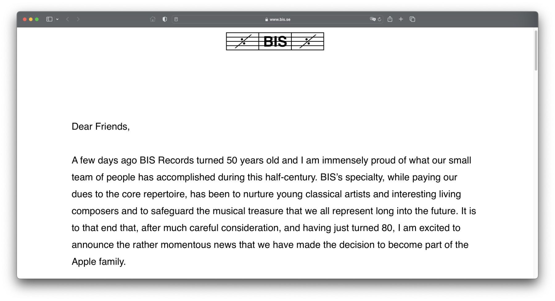 Das Musiklable BIS Records wurde 1973 in Schweden gegründet. Der Gründer Robert von Bahr hat nun anlässlich des 50-jährigen Bestehens sowie seines 80. Geburtstags auf der BIS-Webseite verkündet, dass Apple das Lable aufgekauft hat. Es wird im Apple-eigenen Lable Platoon aufgelöst und soll das Angebot von Apple Music Classical erweitern.