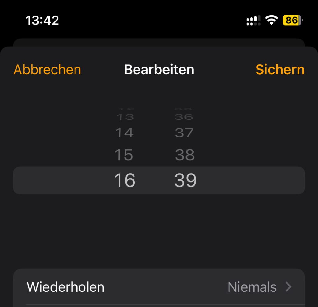 Kuriosität im Wecker der Uhr App: Liste statt Regler