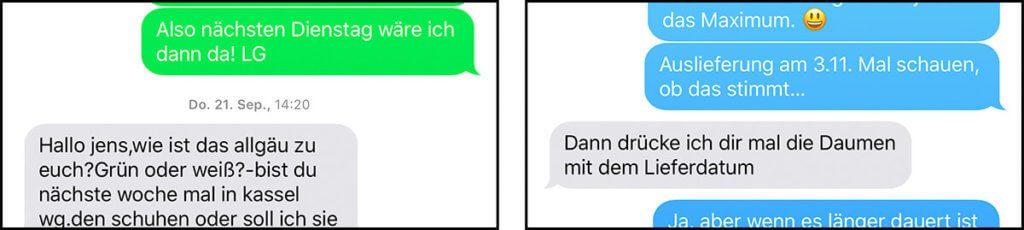 In der Nachrichten-App findet man aus diesem Grund die Sprechblasen, in denen die Nachrichten erscheinen, in zwei verschiedenen Farben: Grün und Blau. Während die blauen Blasen anzeigen, dass man gerade eine iMessage verschickt hat, weist eine grüne Blase auf eine SMS hin.
