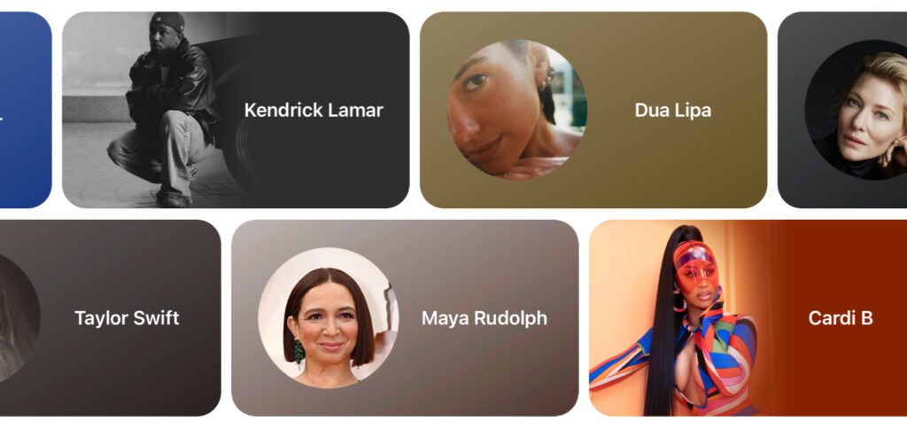 Apple hat eine neue Webseite ins Leben gerufen, die Stars aus verschiedenen Bereichen aufzeigt. Klickt man auf einen der Namen bzw. Fotos, werden weitere Details gelistet sowie Angebote aus Apple Music, Apple TV und Apple Podcasts aufgezeigt.