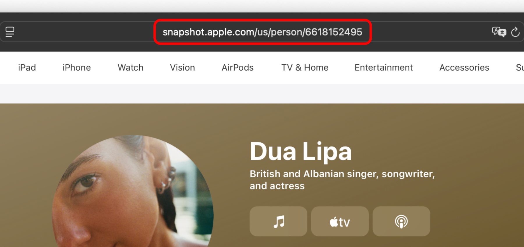 Apple hat eine neue Webseite ins Leben gerufen, die Stars aus verschiedenen Bereichen aufzeigt. Klickt man auf einen der Namen bzw. Fotos, werden weitere Details gelistet sowie Angebote aus Apple Music, Apple TV und Apple Podcasts aufgezeigt.