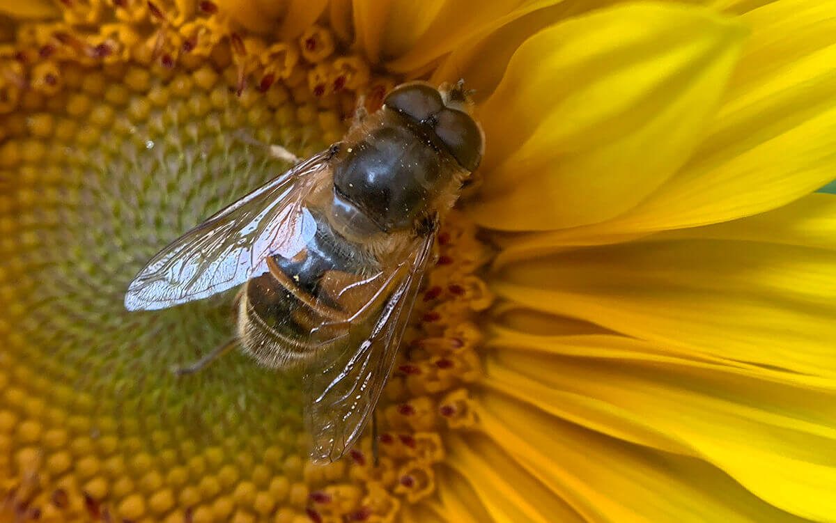 Die Schärfe stellt man bei der Verwendung von solchen Linsen übrigens nicht mehr ein, indem man das Objektiv auf dem Display antippt, sondern man variiert den Abstand der iPhone-Kamera zum Fotomotiv. Da man nur eine geringe Schärfentiefe zur Verfügung hat, muss man genau die Anzeige im Auge behalten und im richtigen Moment abdrücken, denn bei Blumen im leichten Wind oder bei laufenden Bienen in Sonnenblumen verpasst man den richtigen Fokus ziemlich schnell – ich spreche aus Erfahrung.