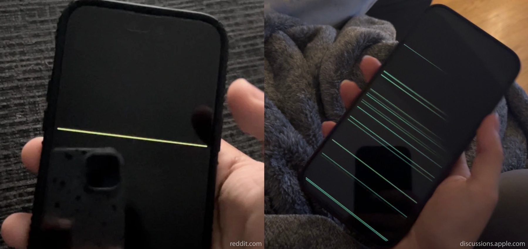 Immer mehr Berichte zu den Grafik-Störungen bei den aktuellen Pro-Modellen des Apple-Smartphones sammeln sich im Netz. Neben den verlinkten und mit Fotos der Fehler ausgestatteten Seiten gibt es auch noch weitere Meldungen, u. a. in zusätzlichen Threads von Apples Community-Seite und Reddit. Allen gemein ist dabei, dass die mal grünen und mal gelben sowie mal einzeln und mal über das ganze Display verteilt auftauchenden Linien beim Einschalten, Ausschalten und beim Entsperren auftauchen können. Dabei zeigen sie sich aber nur kurz. Dieses Aufflackern des Grafikfehlers, so berichtet MacRumors mit Bezug auf ein internes Apple-Memo, soll mit einem Softwareupdate gelöst werden können.