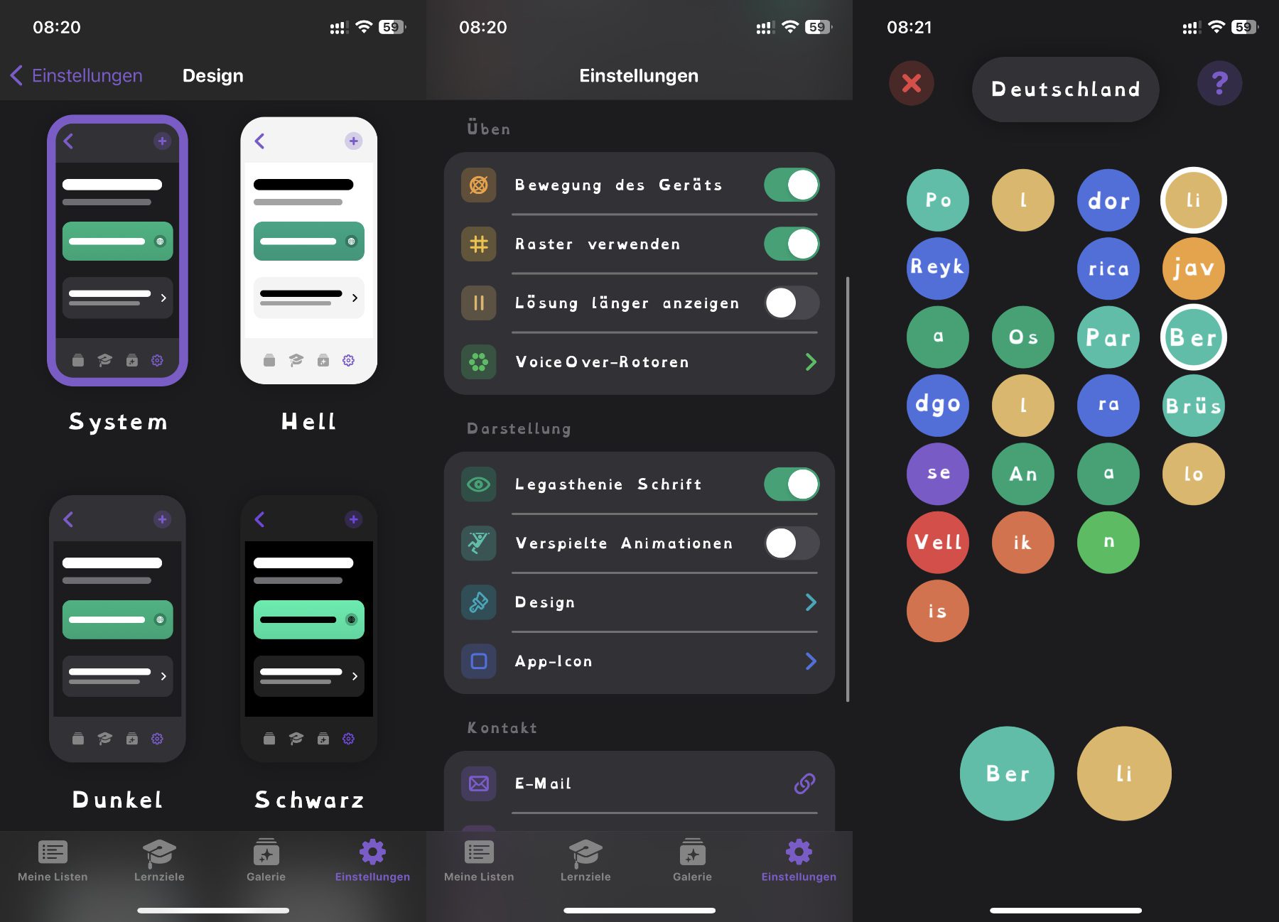 - Mehrere Lern-Modi und Aufteilungen von Lösungswörtern