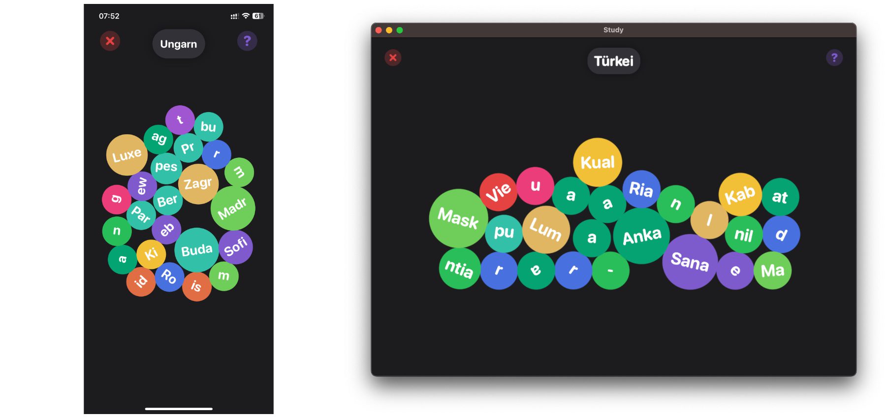Ab heute gibt es in den App Stores für Apple-Geräte eine neue Lern-App namens Study with Subwords. Diese wurde von Klemens Strasser entwickelt und bietet eine durchdachte Alternative zum Lernen mit Karteikarten. Mit eigenen Lernlisten oder Inhalten, die man aus einer Galerie herunterladen kann, lässt sich spielerisch neues Wissen aneignen. Länder und ihre Hauptstädte, Körperteile und ihre lateinischen Bezeichnungen, Vokabeln und ihre Übersetzung oder komplett andere Dinge könnt ihr damit abfragen lassen. Dabei werden die Lösungsworte zerteilt und vermischt angezeigt. Aus den Einzelteilen muss dann das passende Wort gebildet werden.