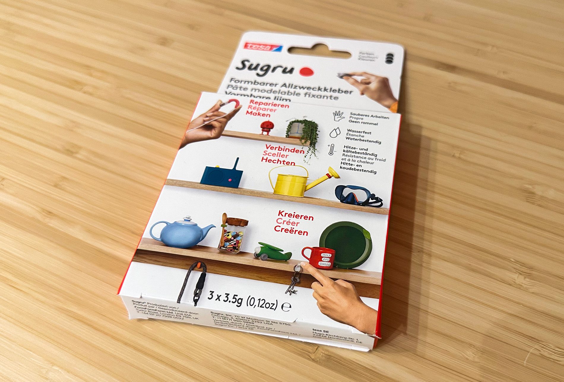 Vor Jahren hatte ich Sugru schon einmal im Einsatz gehabt, aber damals war es noch eine neue Erfindung. Mittlerweile hat sich Tesa den Namen und vermutlich auch das ganze Produkt dahinter eingekauft und damit ist es auch in Deutschland verfügbar.