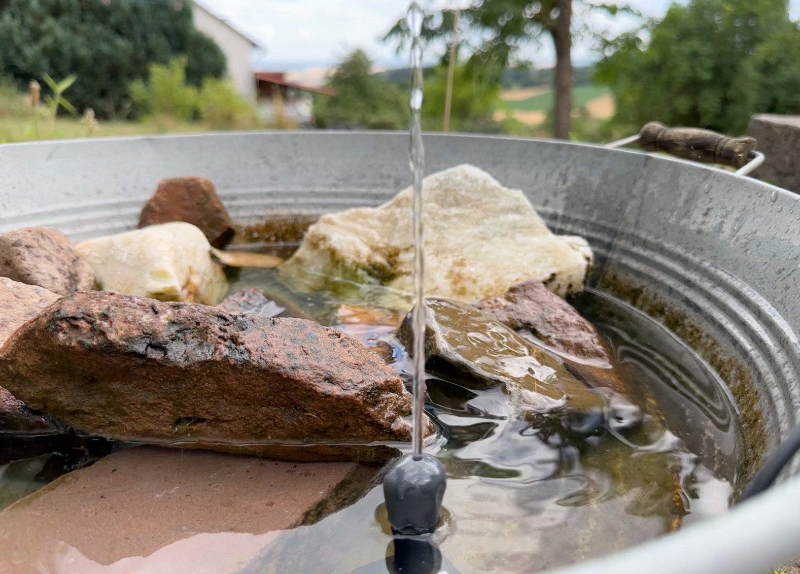 Dazu habe ich den Brunnen schön getrocknet, dann das ein Päckchen Sugru geöffnet, das Sugru durchgeknetet und dann zu einer Kugel geformt. Diese wurde dann auf den Brunnenausgang gesteckt und am Rand mit dem Rohr verbunden, sodass alles schön dicht ist.