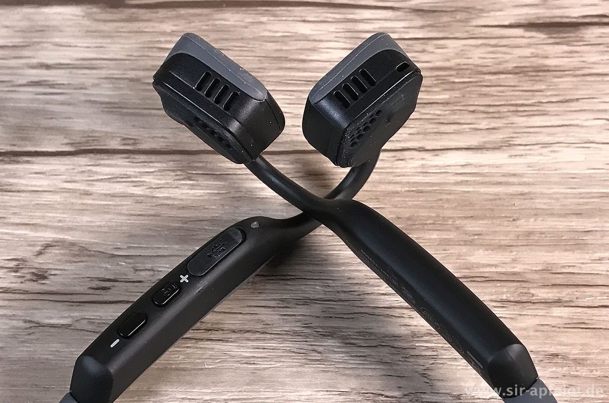 Man kann den AfterShokz Trekz Titanium also sehr gut für sportliche Aktivitäten nutzen. Lediglich für Menschen mit langen und sehr dicken Haaren ist er laut Aussage meiner Freundin nicht so gut geeignet, da man die Haare weder über noch unter den Nackenbügel bekommt (wenn man wirklich viele Haare hat). So drücken dann entweder die Haare von oben oder von unten gegen den Bügel, was aus Dauer unangenehm ist. Für die meisten Personen dürfte es aber kein Problem sein.