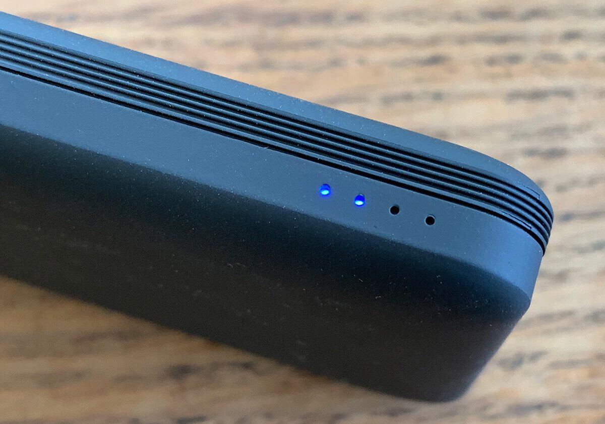 Als kleiner Nebeneffekt der gummierten Oberfläche zeigt sich, dass die Powerbank ein kleiner Staubmagnet ist. Wischt man sie jedoch über die Jeans, ist sie wieder blitzblank. Für meine Begriffe ist dies kein großes Problem, aber ich wollte es wenigstens erwähnen. Ich nehme an, dass Sauberkeitsfanatiker sowieso nicht soviel Dreck im Haus haben, wie wir gerade bei der Renovierung.