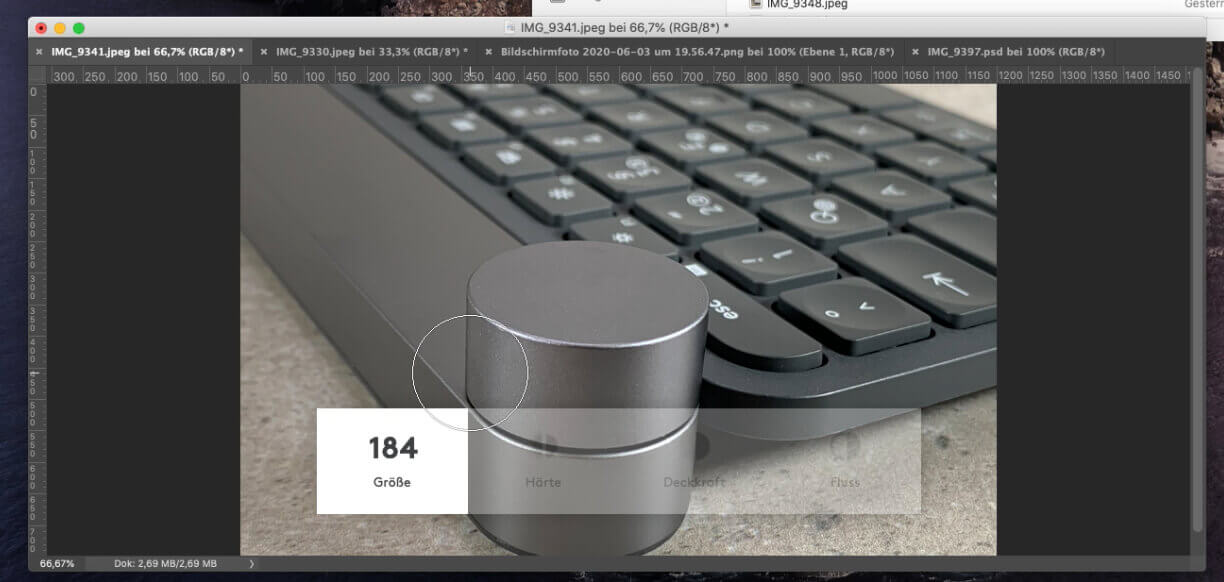 Das sind kleinere Problemchen, die für mich aber nicht essentiell sind, denn ich nutze die Logitech Craft hauptsächlich in Photoshop zum Ändern der Größe der Werkzeuge. Das funktioniert einwandfrei und hilft mir wirklich, die Zeit für die Bildbearbeitung zu minimieren.
