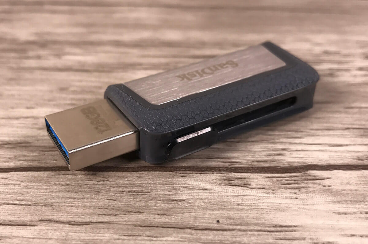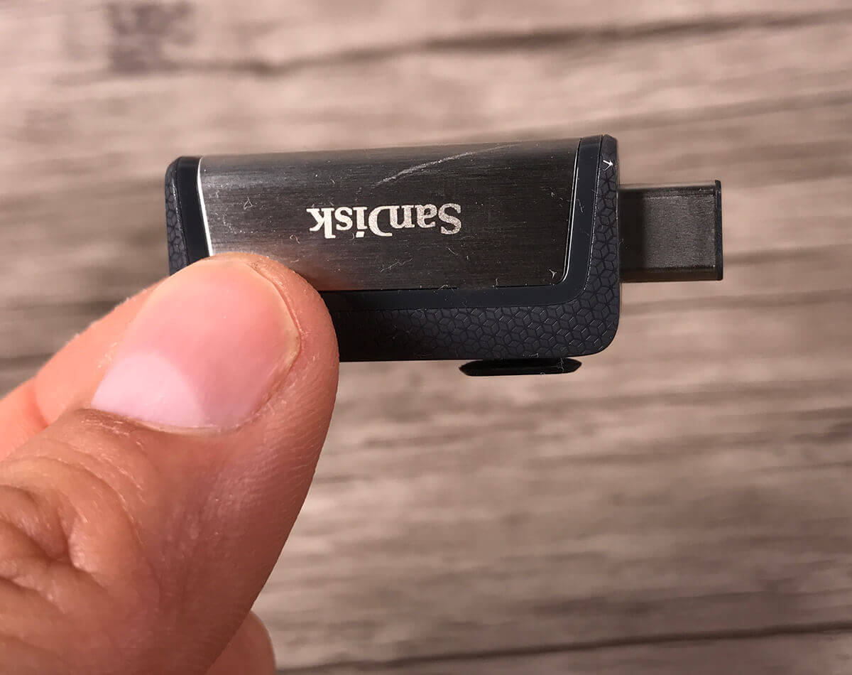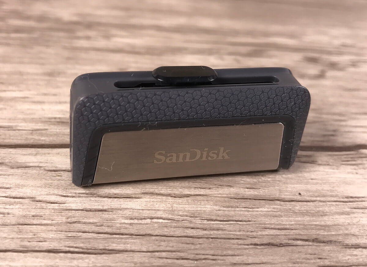 Bei Amazon bin ich schließlich auf den SanDisk Ultra USB-Stick mit 128 GB gestossen, der einen Schieber eingebaut hat und damit sogar USB-A und USB-C Anschlüsse abdeckt. Hat man den Schieber in Mittelstellung, sind beide Stecker gut geschützt im Inneren des Sticks verschwunden. Rein optisch sieht der Stick ebenfalls gut aus, aber die Kundenbewertungen sind eher durchwachsen. Einige Kunden geben dem Stick sehr gute Bewertungen, weil er hohe Geschwindigkeiten bietet, während andere ihm schlechte Bewertungen geben, da er zu heiß werden würde.
