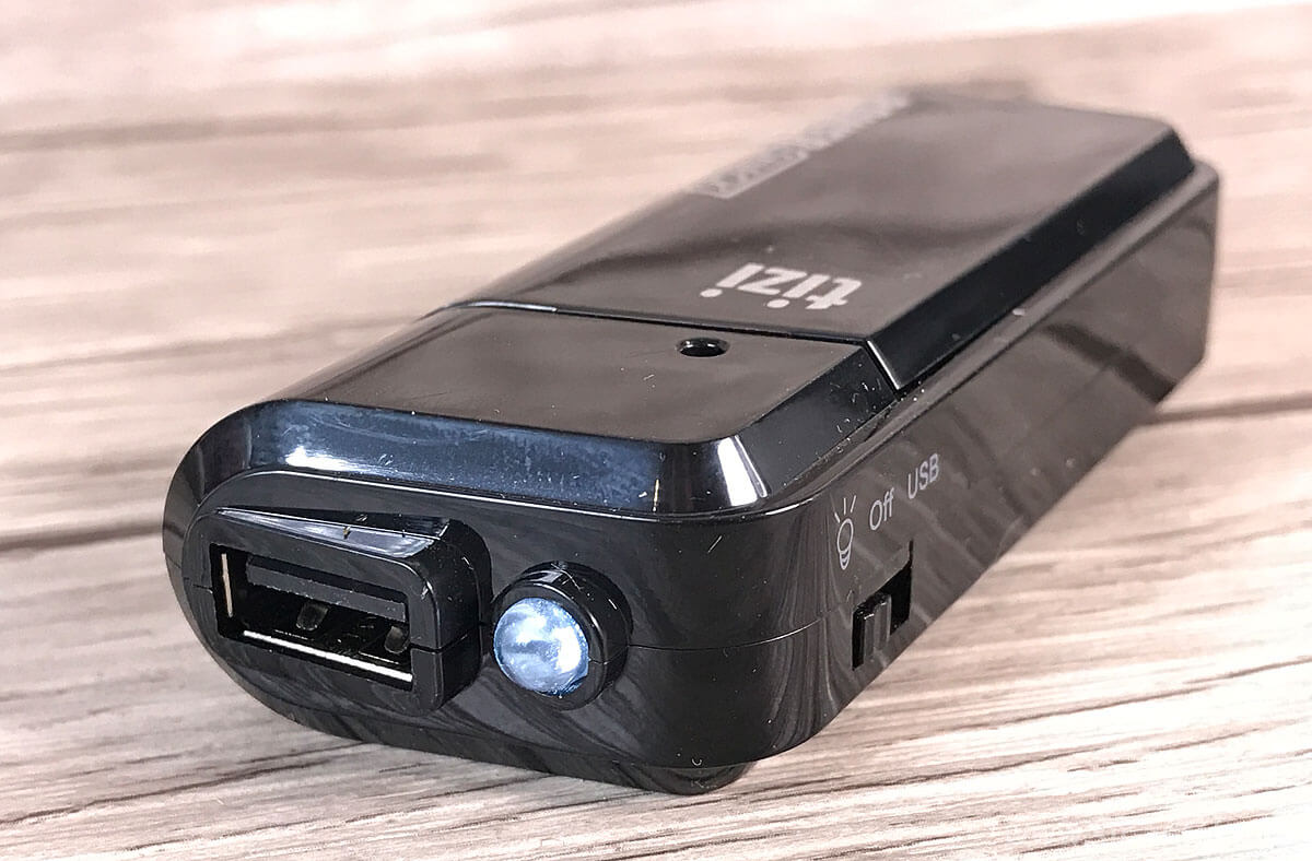 Die technische Seite muss man etwas differenziert sehen. Betreibt man den tizi PowerSnack mit Batterien, hat man natürlich eine höhere Ausgangsspannung und die LED leuchtet entsprechend heller. Betreibt man das Gerät mit zwei AA-Akkus, ist die LED derart funzelig, dass sie selbst in einem dunklen Raum, wie eine LED kurz vor dem Absterben wirkt.