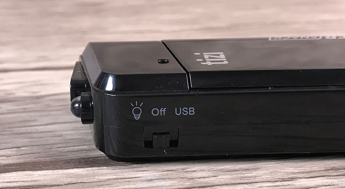 Diese beiden Punkte kann man schnell mit "positiv" abhaken, denn die kleine Box läßt sich leicht öffnen und mit Batterien (so sieht es die Beschreibung vor) oder mit Akkus (das habe ich vorgesehen) betanken. Dann schiebt man den Deckel wieder drauf und kann an einem seitlichen Schiebeschalter zwischen LED-Licht, Off und USB-Ausgang wählen. Eine kleine rote Leuchtdiode zeigt dann an einer Seite noch an, ob gerade Strom über den USB-Port geliefert wird oder nicht.