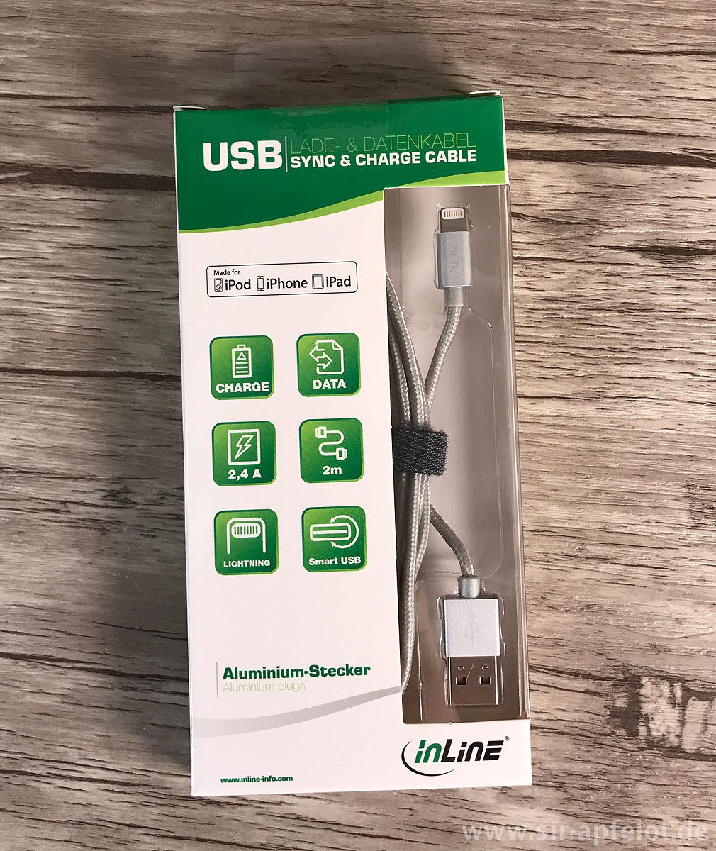 Wenn ihr euch das inLine Lightining-USB-Kabel anschauen möchtet, findet ihr es hier bei Amazon.