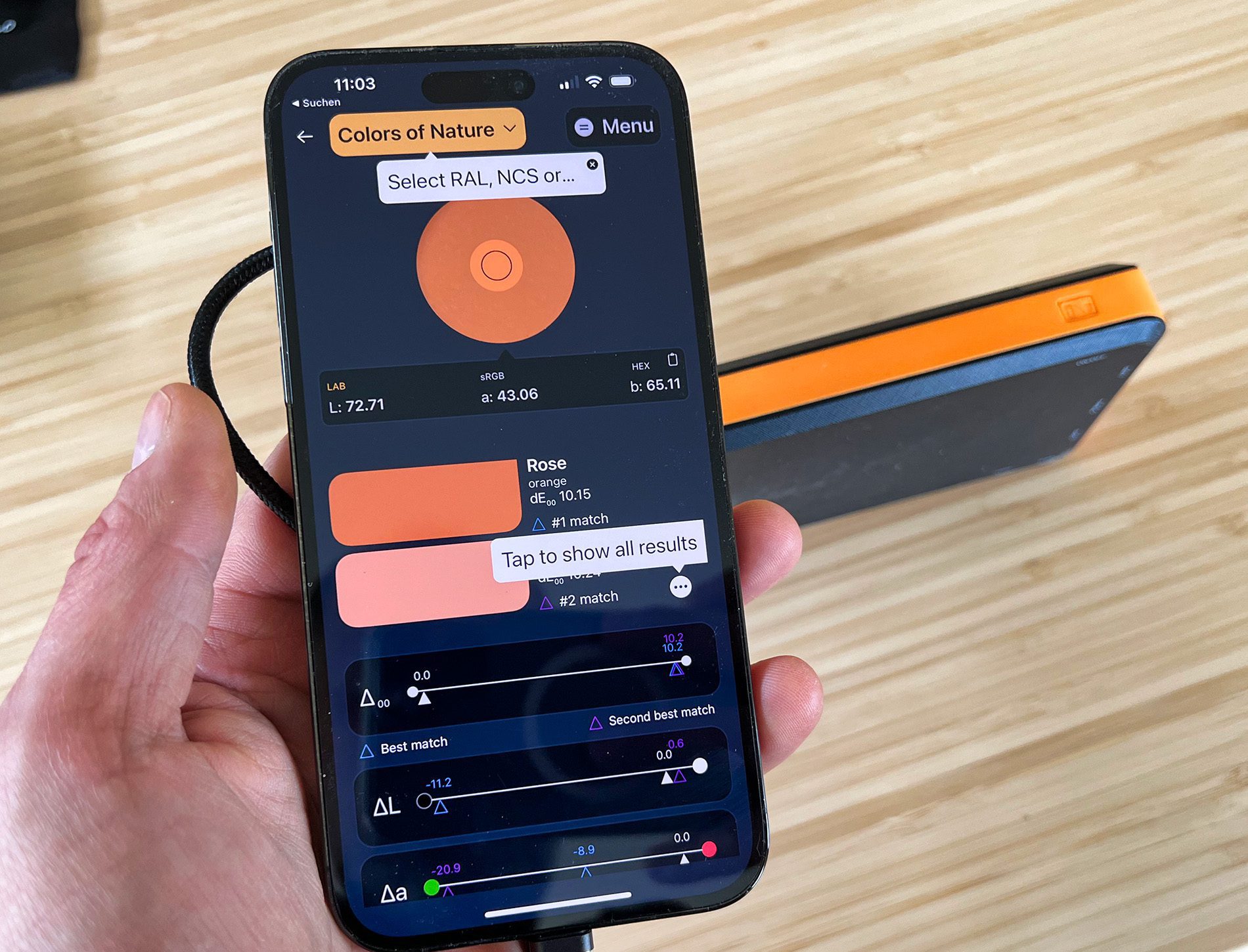 Unterm Strich: Wer verbindlich Farben mit seinem iPhone messen möchte, sollte sich das xade nano definitiv anschauen. Solange man eine Internetverbindung hat, kann man mit dem xade nano und dem iPhone 14 Pro bzw. Pro Max überall jeden beliebigen Farbton messen und sich den besten Näherungswert in diversen Farbkollektionen ermitteln lassen.