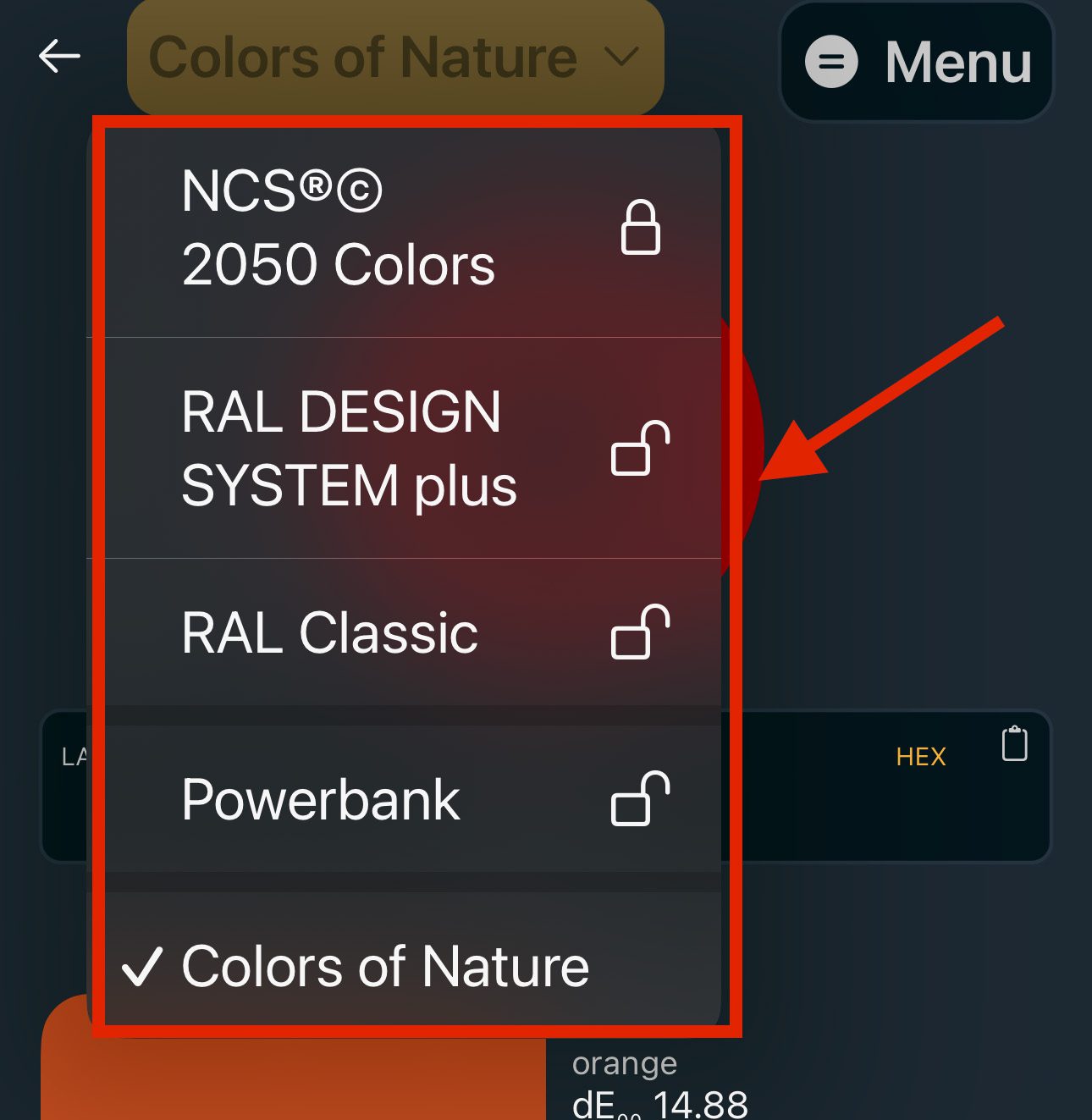 In der App kann man zwischen verschiedenen Farbspektren umschalten und damit die App dazu bewegen, die am besten passende Farbe aus diesen Vorgaben zu finden.