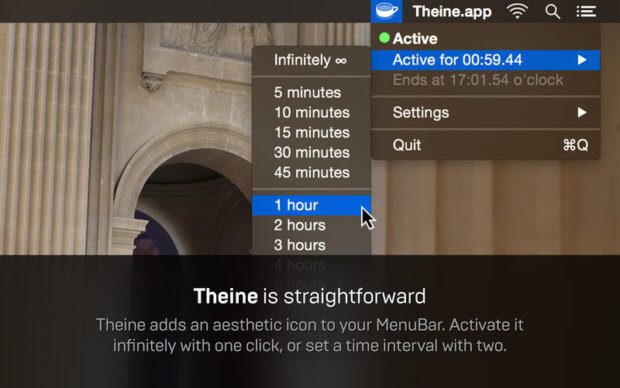 Das Terminal ist nicht jedermanns Sache und gerade wenn es schnell gehen muss, dann greift man doch lieber auf vorgefertigte Lösungen zurück. Auf der Suche nach Infos und Apps habt ihr vielleicht schon einmal von „Caffeine“ gehört. Caffeine soll aber, so habe ich es hier gelesen, den Standort des Nutzers ausspionieren. Besser, weil privater als Caffeine, ist daher Theine, was auf Deutsch soviel wie Teein heißt, also die Kaffee-Alternative aus Tee.