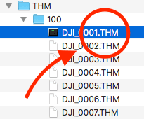 Die Dateien mit der Endung "thm" sind also kleine "Thumbnails" (daher vermutlich auch die Abkürzung), die erzeugt werden, damit man in der DJI Go App eine Preview des aufgenommenen Films der Drohne hat.