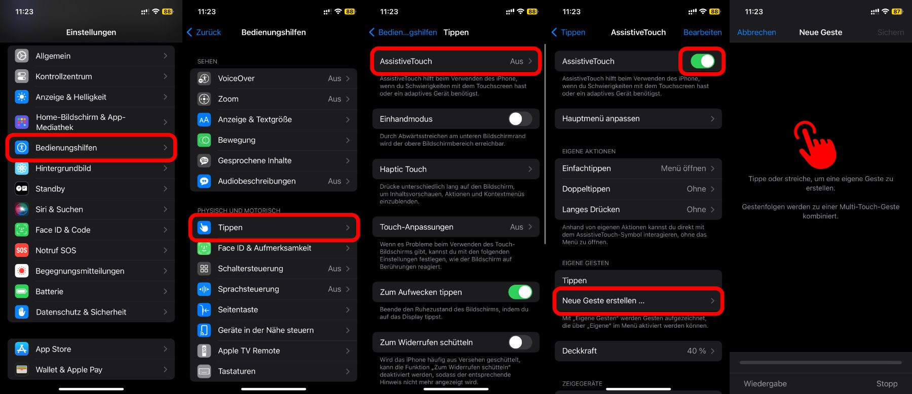Die eigene Geste in AssistiveTouch ist also nur bedingt zum Zeigen von Display-Berührungen bei einer iPhone-Bildschirmaufnahme geeignet.