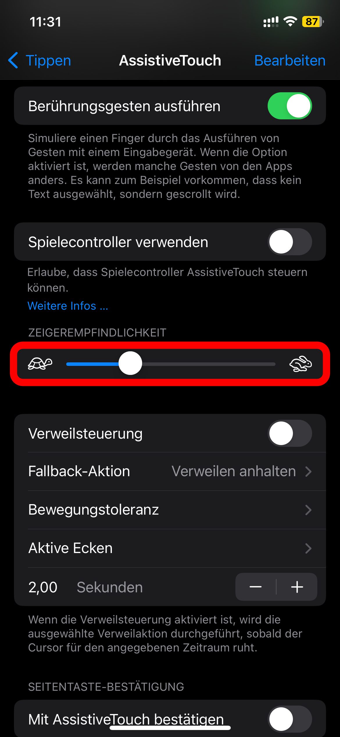 Geschwindigkeit des Maus-Cursors am iPhone einstellen