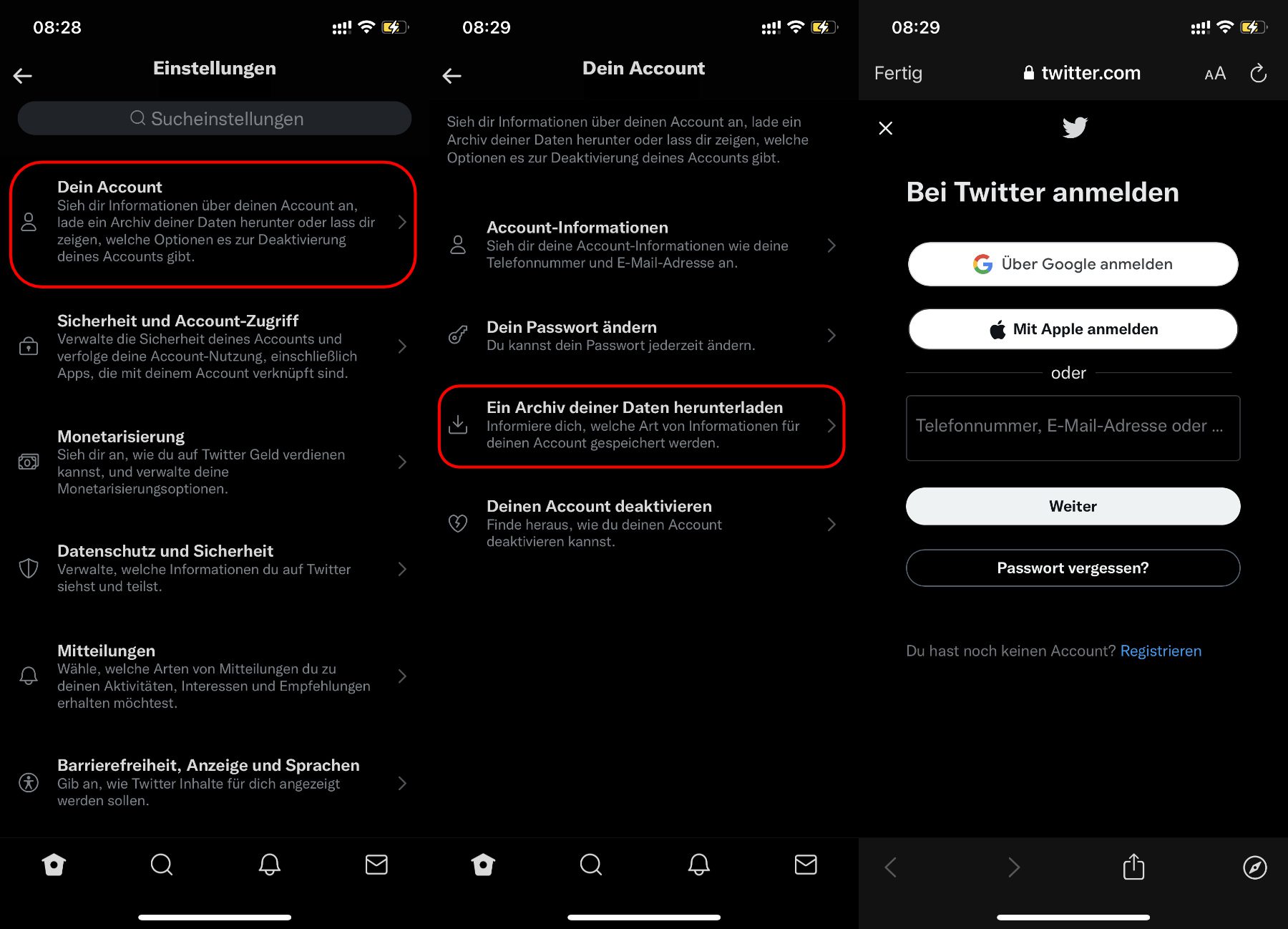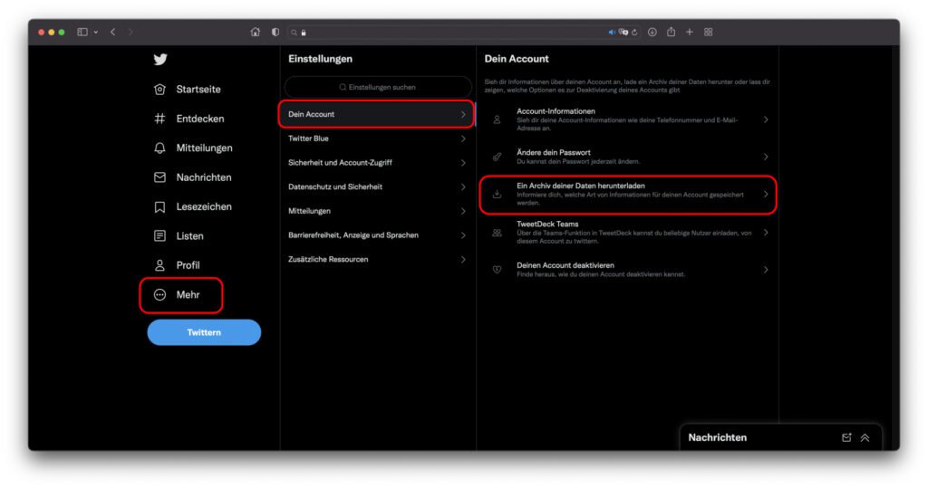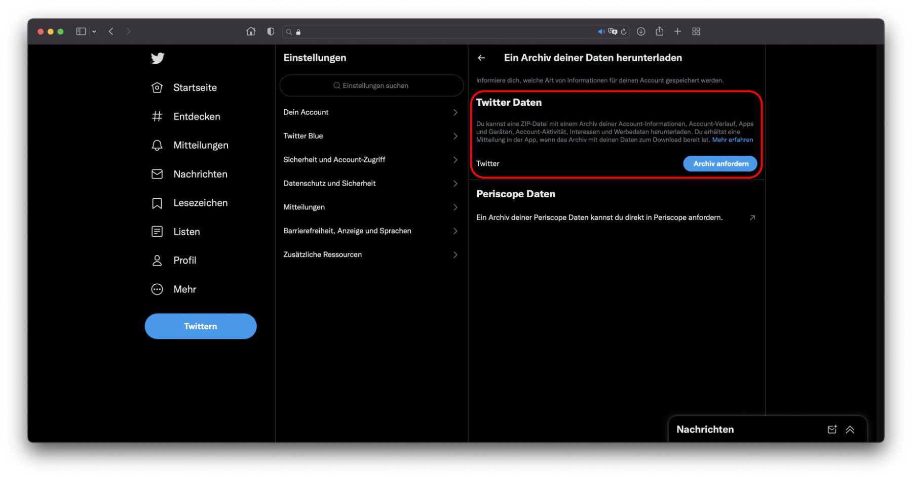 Wann kann ich mein Twitter Account-Archiv herunterladen?