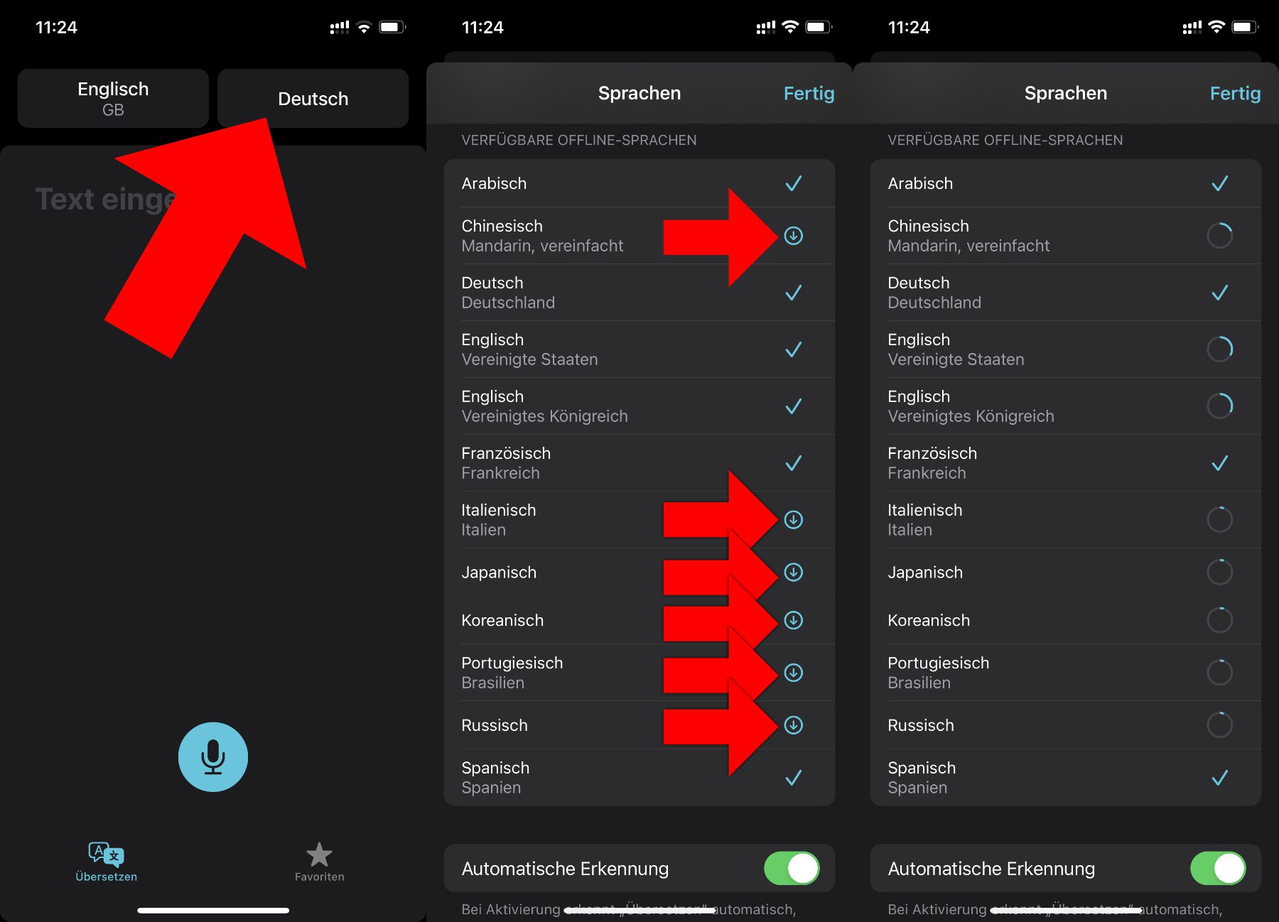 - Wartet auf den Download und nutzt anschließend die verfügbaren Pakete für Offline-Übersetzungen