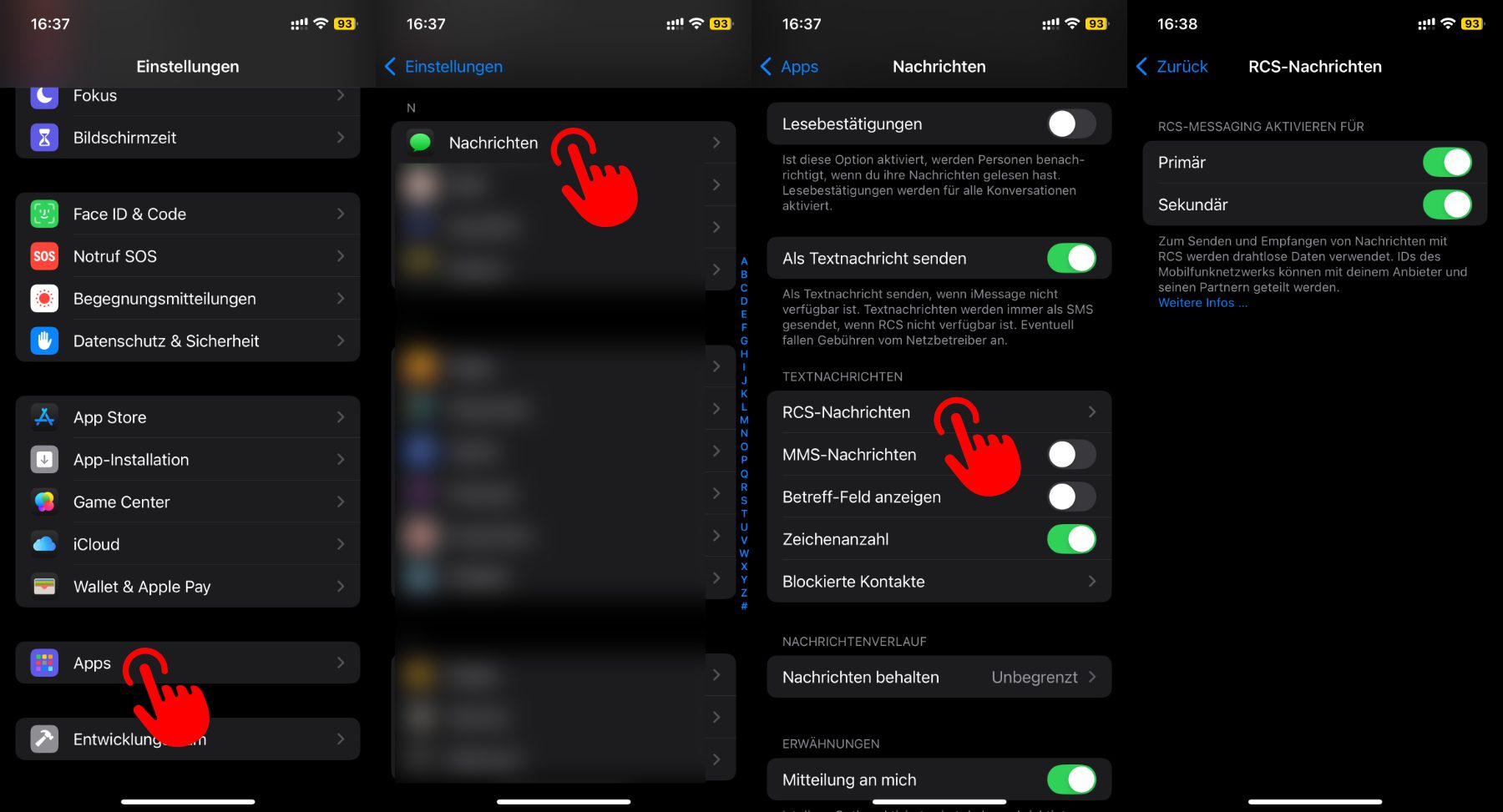 - Im Bereich „Textnachrichten“ auf RCS-Nachrichten tippen