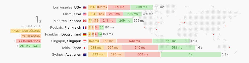 Sollte mein Blog mal irgendwann extrem erfolgreich sein und ich weiß nicht mehr, wohin ich das Geld werfen soll, dann buche ich mir das CDN von Akamai oder Cloudflare. Dann fluppt es auch aus allen Ländern. Aber derzeit wäre das noch etwas außerhalb meines Budgets. An dieser Stelle ein Verweis auf meine Steady-Seite, über die man mir ein bisschen finanziell unter die Arme greifen kann. ;-)