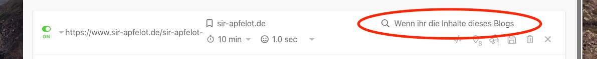 Für Blogger wie mich ist das Prüfen der Server-Reaktion also nicht zielführend. Stattdessen mache ich es nun so, dass ich prüfe, ob auf einer Unterseite ein bestimmter Inhalt erscheint. In meinem Fall des Sir Apfelot Blogs prüfe ich die Unterseite mit dem Beitrag über meine iPhone- und iPad-App und schaue nach, ob der Text "Wenn ihr die Inhalte dieses Blogs" dort erscheint.