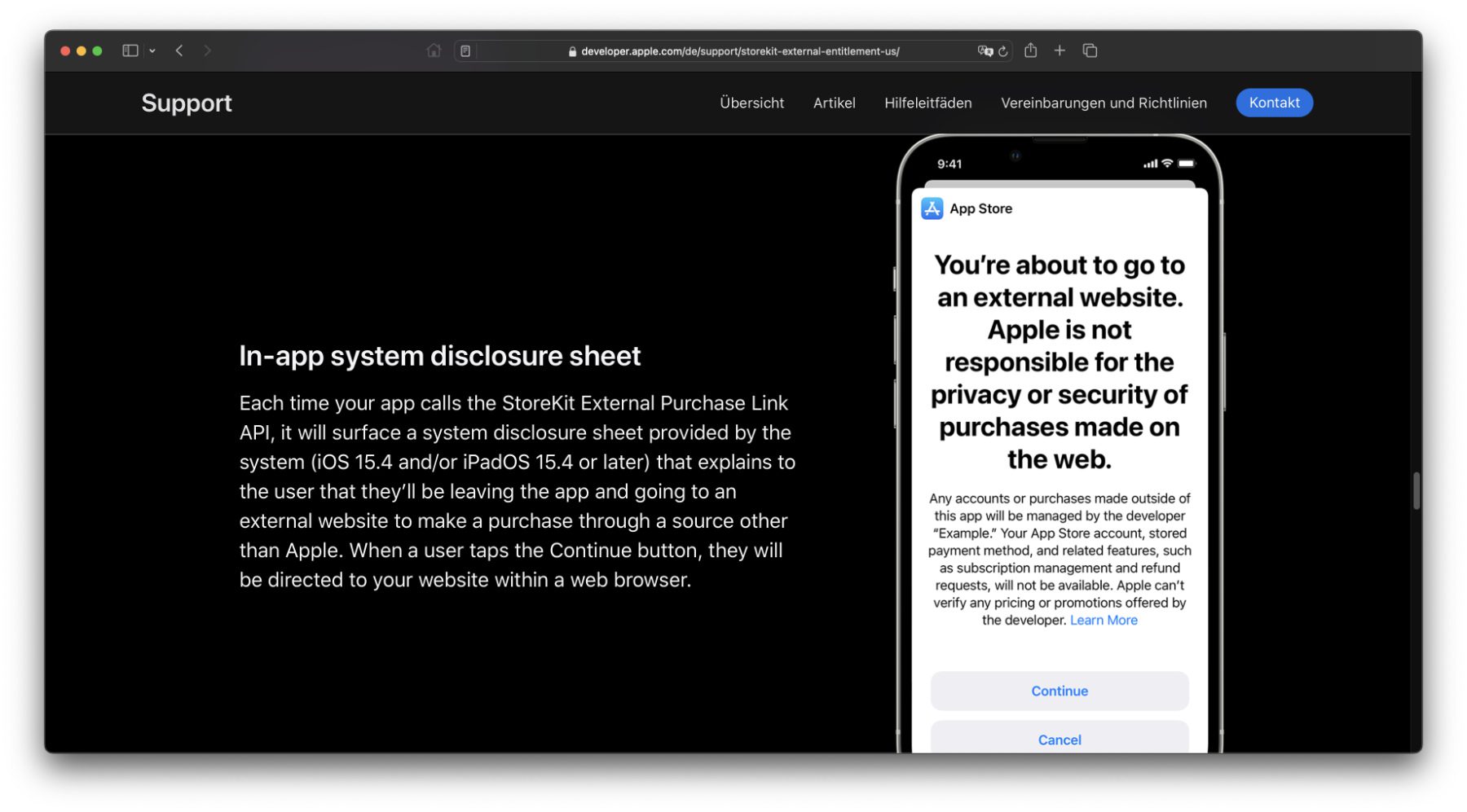 Denn zunächst einmal muss das „StoreKit External Purchase Link Entitlement“ vermittels der Einreichung umfangreicher App- und Website-Informationen angefragt werden. Ist man damit erfolgreich, muss anschließend das Entitlement-Profil in Xcode integriert werden. Weiterhin müssen der Link und die Webseite dahinter mehreren von Apple festgelegten Kriterien entsprechen.