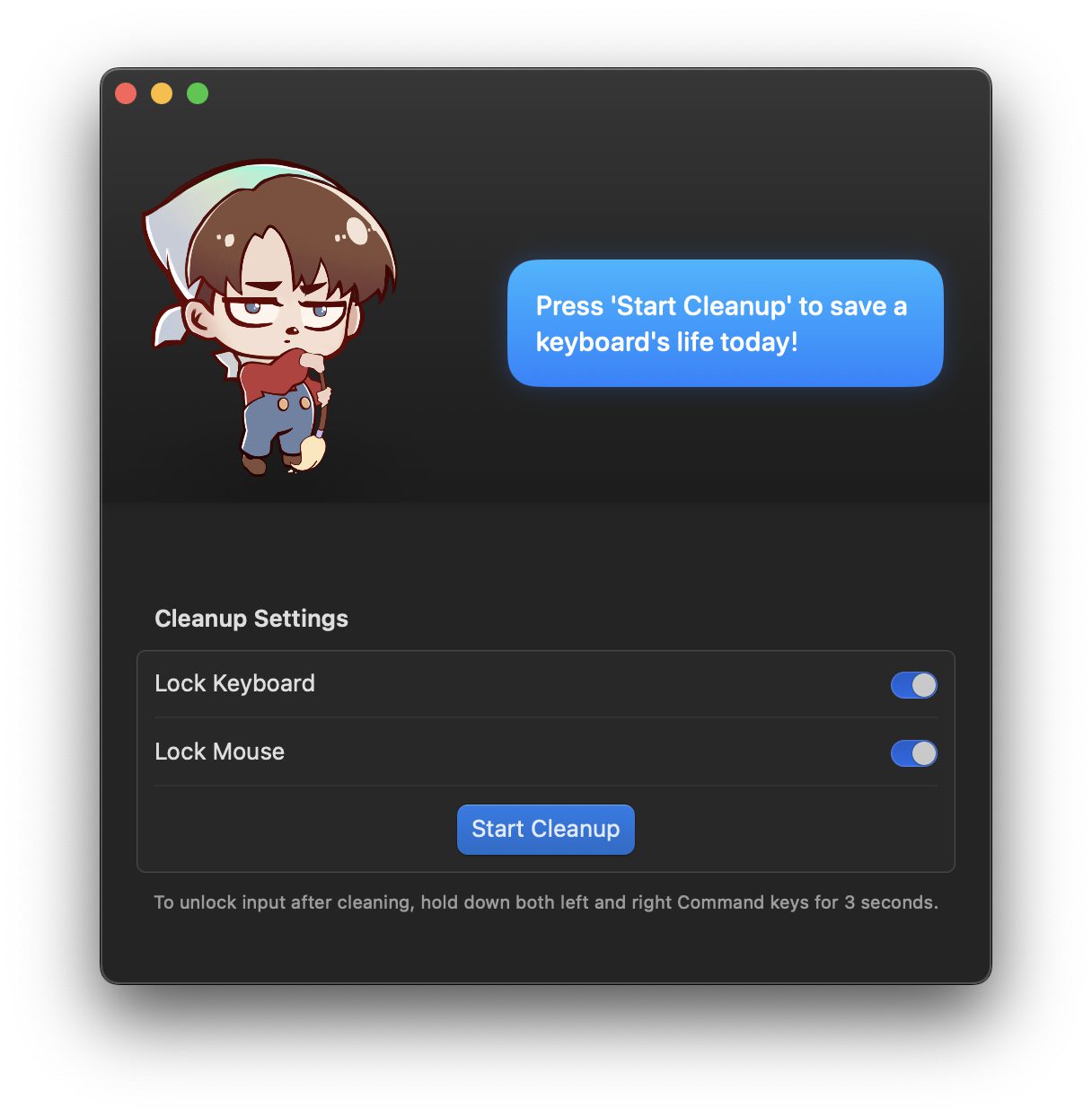 Bleibt weiterhin das Problem der Tastatur- und Trackpad-Eingaben. Diese führen auch bei der Nutzung der oben aufgezeigten Terminal-Befehle für einen Start des Laptops. Kann man diesen hinnehmen und sich damit anfreunden, die Tastatur zu putzen, während das MacBook eingeschaltet ist, hilft die App „CleanupBuddy“ weiter. Sie sperrt die Tastatur und gibt sie erst frei, wenn man drei Sekunden lang beide command-Tasten gedrückt hat. So werden ungewollte Eingaben effektiv verhindert. Aus persönlicher Nutzungserfahrung heraus kann ich die App uneingeschränkt empfehlen.