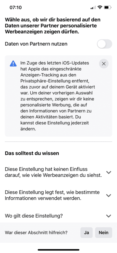 - Den Punkt „Daten von Partnern nutzen“ deaktivieren