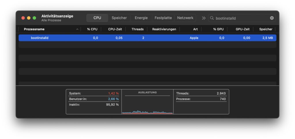Nun wissen wir also, was bootinstalld ist und warum dieser Daemon unter macOS so wichtig ist. Im Normalfall sollte er keine Probleme machen und in der Aktivitätsanzeige nicht weiter auffallen. Falls es doch mal dazu kommt, sollte ein Neustart des Prozesses oder des ganzen Mac helfen. In unserer Beitragsreihe zu macOS-Prozessen findet ihr übrigens noch folgende Beispiele: replayd, fairplayd, bird, lsd, AppleSpell und mehr.