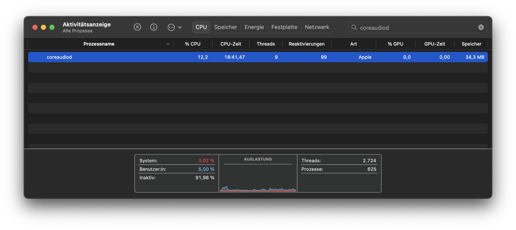 Mac-Problem: coreaudiod verursacht hohe CPU-Last
