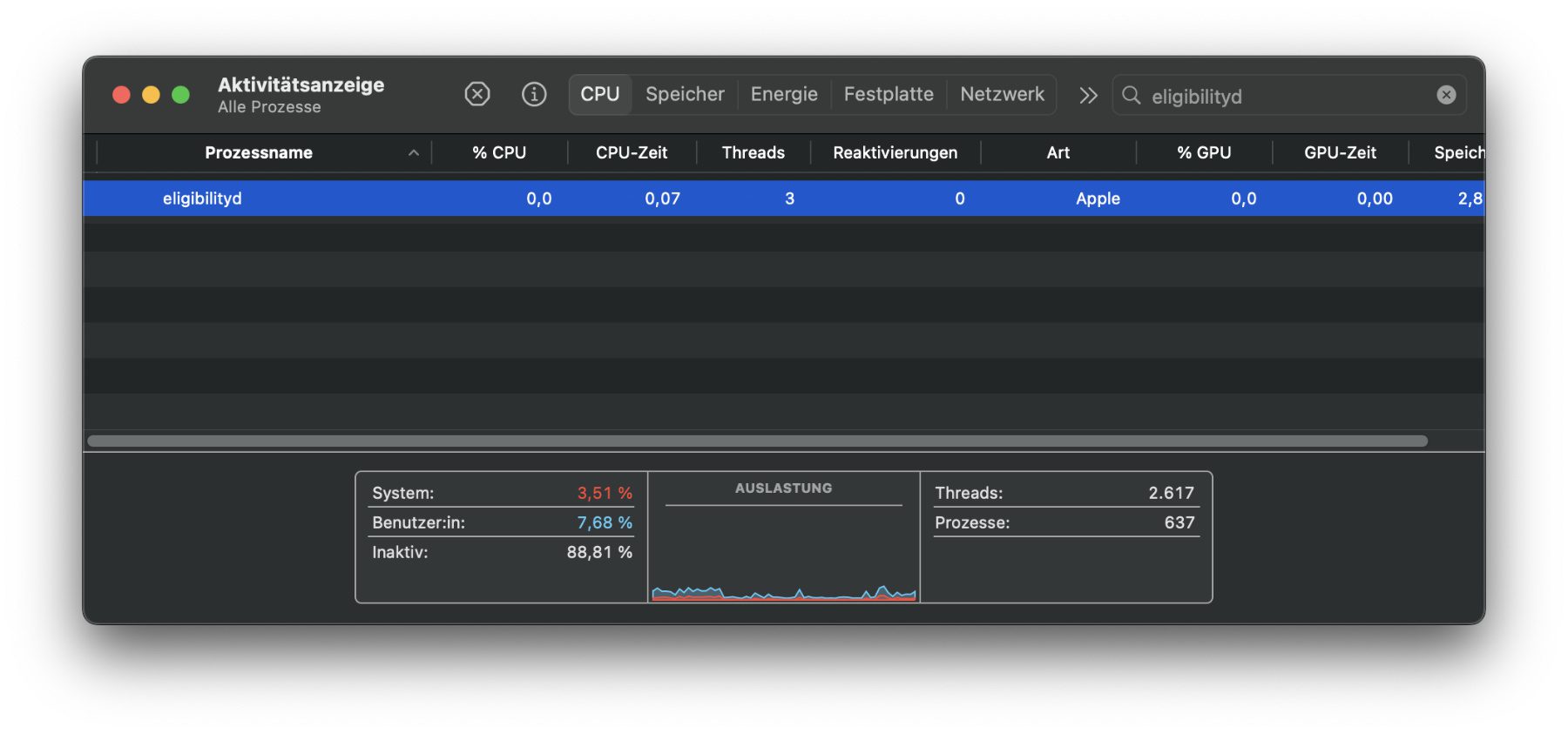 Genau hier kommen Prozesse wie eligibilityd zum Einsatz. Dabei handelt es sich um den Eligibility Daemon. „Eligibility“ heißt dabei so viel wie „Berechtigung“ oder auch „Verfügbarkeit“. Ein Daemon ist ein selbstständig im Hintergrund agierender Prozess, der als Mensch-Maschine-Schnittstelle die Nutzung des Computers vereinfachen soll – mehr dazu hier. Der eligibilityd Hintergrundprozess überprüft diese Faktoren zur Ermittlung der Funktionen und Berechtigungen, die verfügbar gemacht oder eingeschränkt werden müssen: