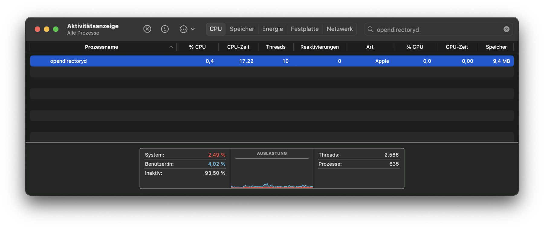 Problem: opendirectoryd sorgt für CPU-Last oder reizt den RAM aus