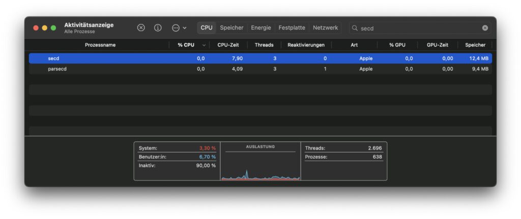 Beim Blick in die Aktivitätsanzeige von macOS auf dem Apple Mac ist euch der secd Prozess aufgefallen? Und jetzt wollt ihr wissen, was es mit diesem Hintergrundprozess auf sich hat? Nun, dann seid ihr hier komplett richtig. Denn in diesem Beitrag zeige ich euch auf, welchen Zweck secd erfüllt und was ihr tun könnt, falls der Prozess den CPU ausreizt. Die gute Nachricht schon mal vorweg: es handelt sich nicht um Schadsoftware.