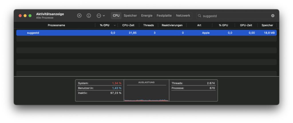 Troubleshooting: Wenn suggestd dauerhaft zu viel CPU verbraucht