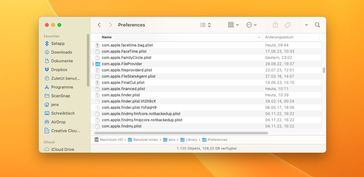 Da die plist-Dateien Einstellungsdaten enthalten, sind diese natürlich in einem Ordner, der übersetzt „Einstellungen“ oder „Präferenzen“ bedeutet, sehr gut aufgehoben.
