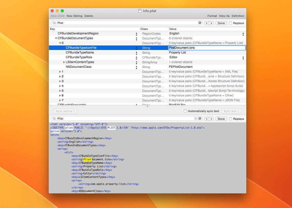Da die plist-Dateien einfache Textdateien sind, die XML-Strukturen enthalten, kann man sie auch mit jedem XML-Editor bearbeiten. Hier wären zum Beispiel folgende Apps zu nennen: