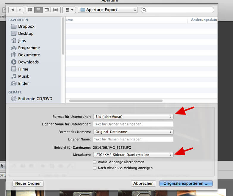 Anleitung für den Export aus Aperture