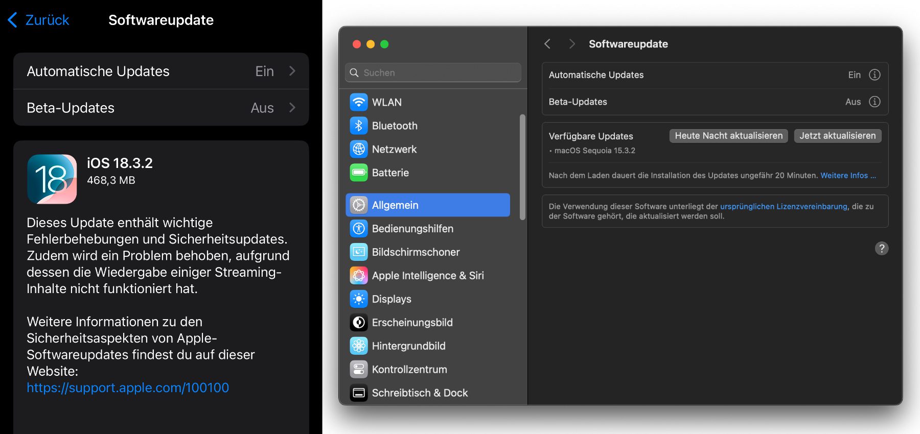 Zudem sollen iOS 18.3.2, iPadOS 18.3.2, macOS 15.3.2, tvOS 18.3.1 und visionOS 2.3.2 dafür sorgen, dass es keine Probleme mehr bei der Wiedergabe von Streaming-Inhalten gibt. Scheinbar hatte sich mit dem Update auf die x.3.1-Systeme bzw. auf tvOS 18.3 ein fehlerhafter Code eingeschlichen, der die Wiedergabe von aus dem Internet geladenen Inhalten störte. Wer dies beheben möchte, sollte die aktuellsten Updates also installieren. Am wichtigsten sind diese aber natürlich für die Beseitigung der WebKit-Schwachstelle und anderer, nicht benannter Fehler.