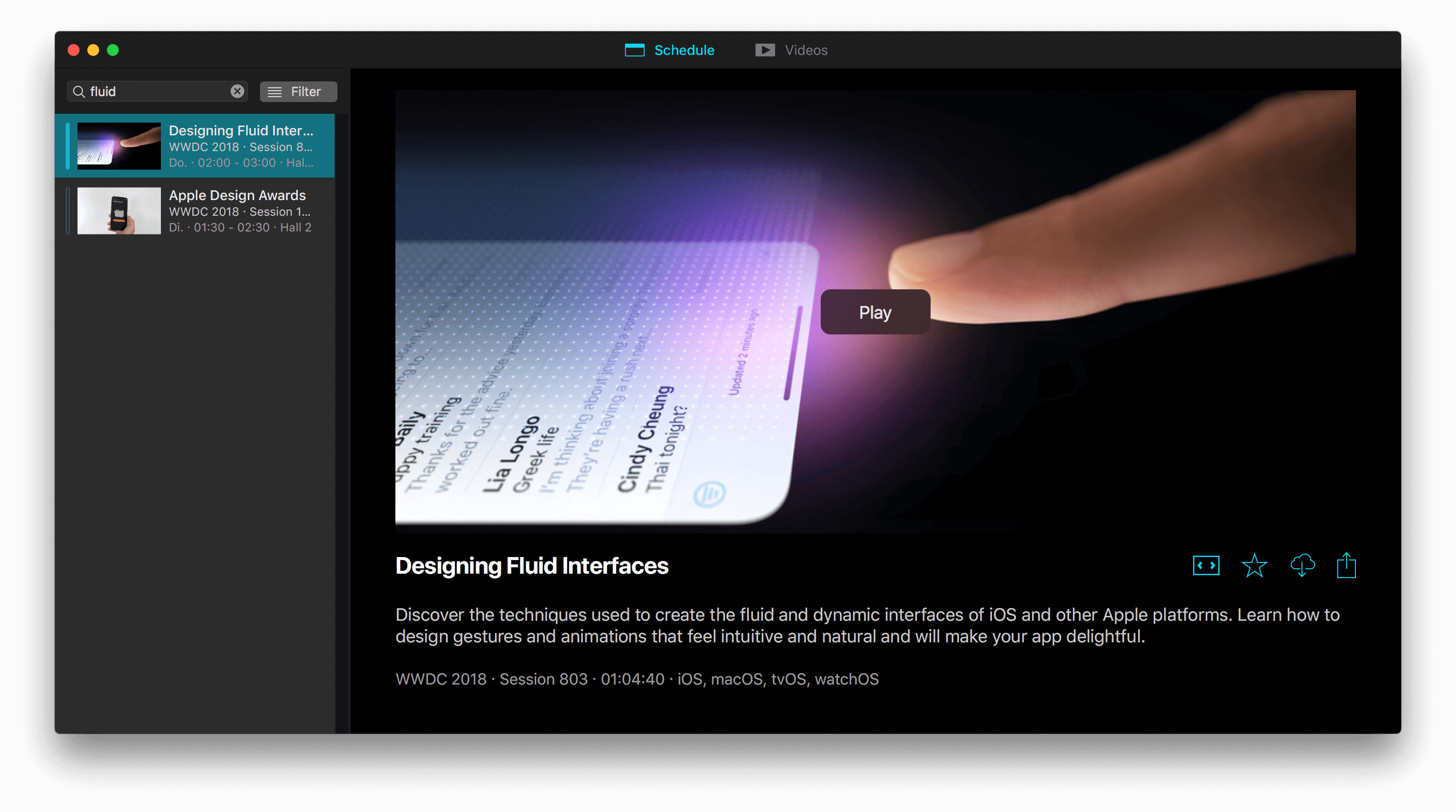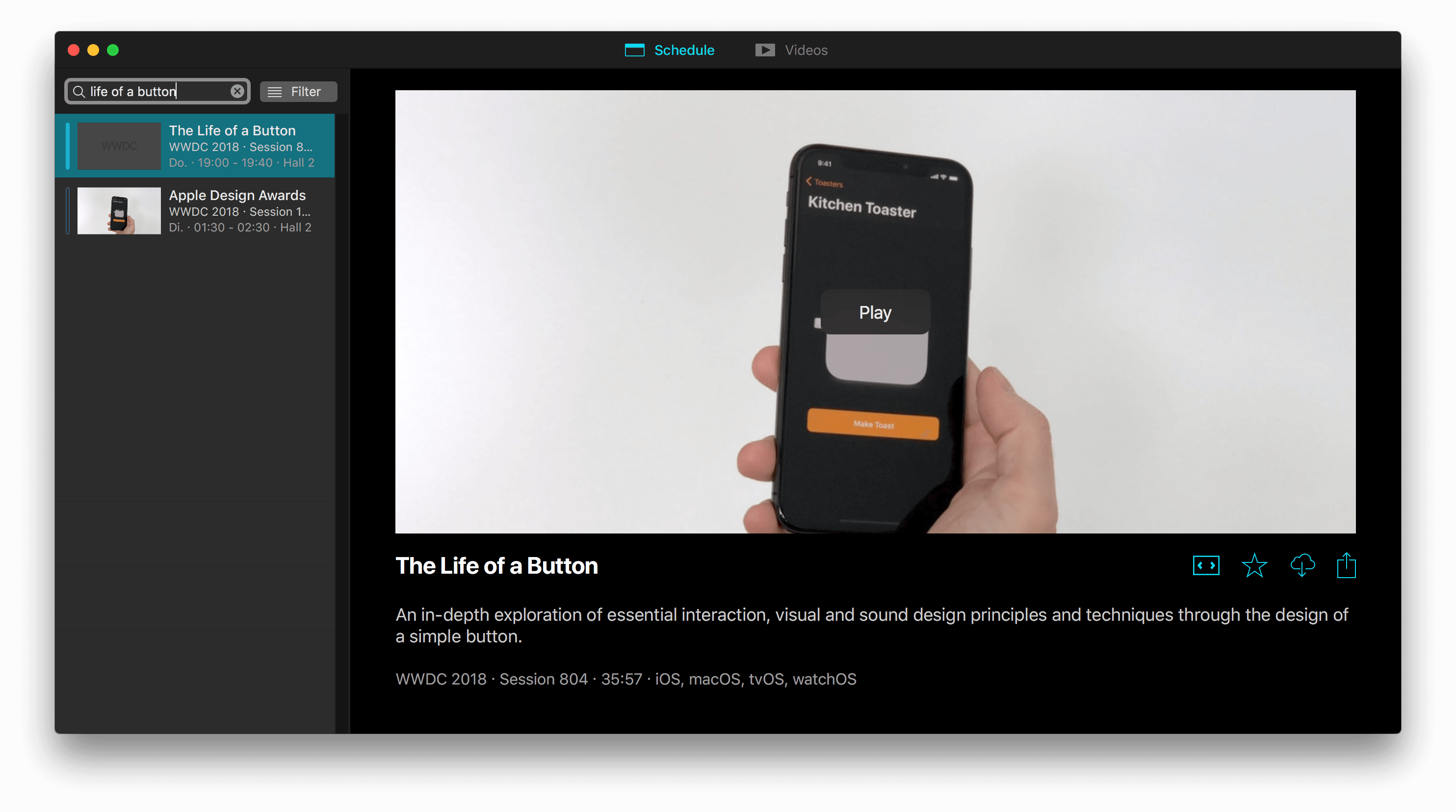 Das Designing Fluid Interfaces Video findet man übrigens auch auf YouTube; das Button-Video habe ich dort nicht gefunden. Wenn ihr also ein größeres Angebot als auf der Video-Plattform haben und euch umfassend zum WWDC-Wissen der letzten Jahre und der zuletzt 2018 abgehaltenen Konferenz informieren wollt, dann lohnt sich die WWDC.io App ;)