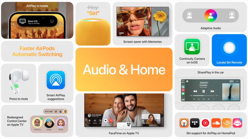 Neuerungen für AirPods, HomePods und Apple TV wurden während der WWDC23-Keynote im „Audio und Home“-Bereich zusammengefasst. Bevor es mit watchOS zum letzten Betriebssystem des Tages geht, schauen wir also mal, was es hier für Neuerungen und Anpassungen gibt: