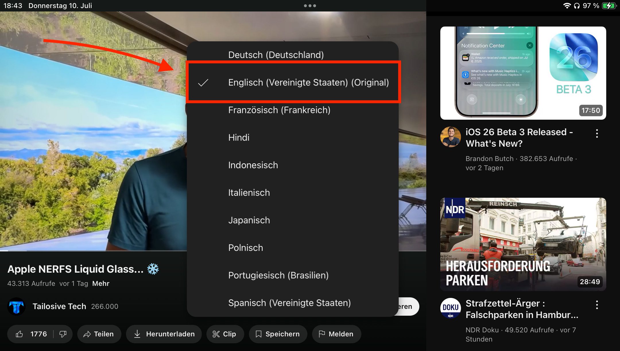Mir ist es in den letzten Tagen verstärkt aufgefallen: Ich starte ein englisches YouTube-Video auf meinem iPad und plötzlich spricht eine ziemlich roboterhaft klingende KI-Stimme den Inhalt auf Deutsch, obwohl das Original eigentlich auf Englisch ist. Das ist YouTubes „AI-Auto-Dubbing“-Feature und wird angeblich seit Dezember 2024 massiv ausgerollt. Bei mir ist es zum Glück erst jetzt eingetrudelt und es nervt mich jetzt schon, da es sich ohne mein Zutun standardmäßig aktiviert.
