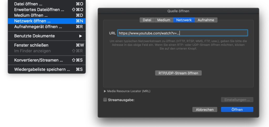 - Im Dropdown-Menü „Netzwerkstream öffnen…“ auswählen