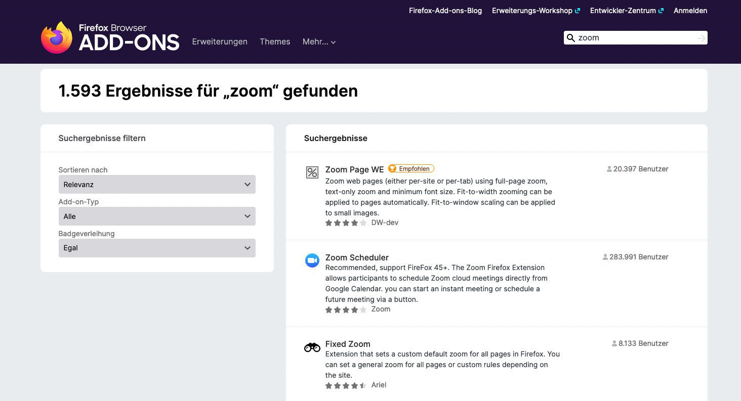 Off-Topic: Zoom Add-ons für Chrome und Firefox